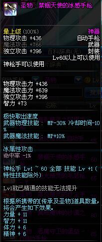 | 60 | 圣物 : 禁锢天使的冰感手枪 | *Lv58~66普通地下城怪物掉落 |