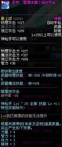 | 25 | 圣物 : 雪魂冰魄之自动手枪 | *Lv24~31普通地下城怪物掉落 | ||