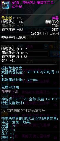 | 20 | 圣物 : 神秘的水魔碧灵之自动手枪 | *Lv19~26普通地下城怪物掉落 | ||