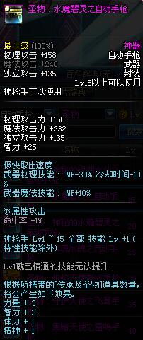 | 15 | 圣物 : 水魔碧灵之自动手枪 | *Lv13~21普通地下城怪物掉落 |