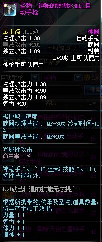 | 10 | 圣物 : 神秘的银湖水仙之自动手枪 | *Lv8~14普通地下城怪物掉落 |