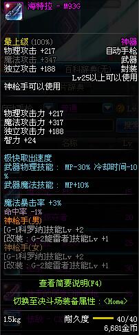 | 25 | 海特拉 - M93G | *Lv24~31普通地下城怪物掉落 *在加百利的神秘商店购买 |