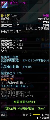 | 辅助装备: | 全职业 鬼剑士 女鬼剑 女格斗 男格斗 神枪手 女枪手 魔法师 男法师 圣职者 暗夜使者 守护者 |