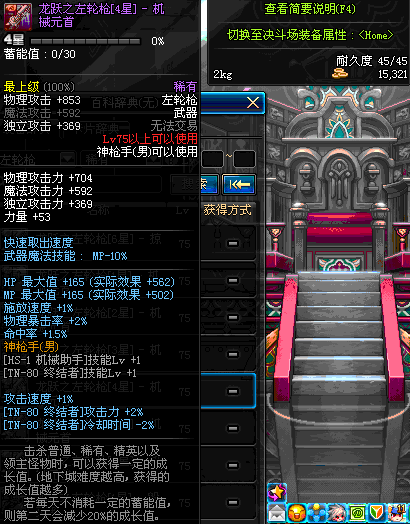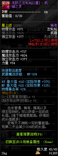 | 75 | 龙跃之左轮枪[2星] – 机械之灵 | *完成二次觉醒任务后可以从NPC小铁柱处获得此道具。 | ||