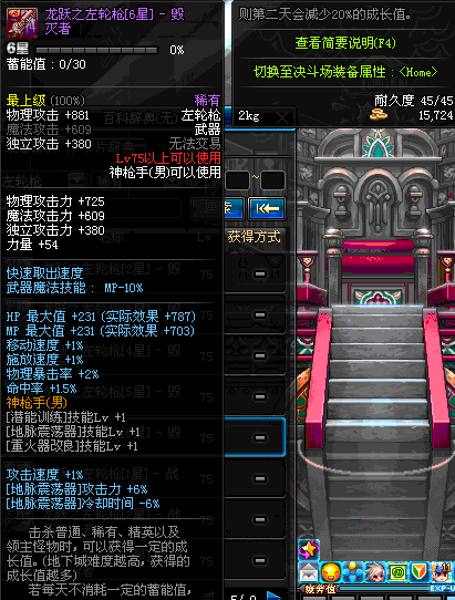 | 75 | 龙跃之左轮枪[6星] – 毁灭者 | *完成二次觉醒任务后可以从NPC小铁柱处获得此道具。 | ||