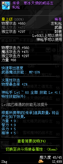 | 25 | 圣物 : 雪魂冰魄之左轮枪 | *Lv24~31普通地下城怪物掉落 | ||