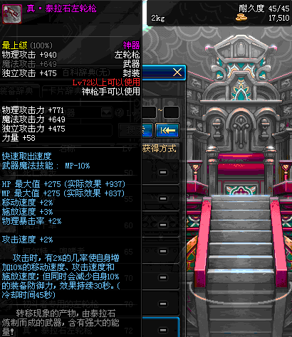 | 72 | 真·泰拉石左轮枪 | *设计图(70LV以上普通地下城 登场的NPC加百利 出售) *泰拉石左轮枪 → 用远古神器装备进化书升级(NPC船长鲁特 出售) |