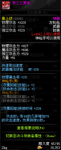 | 80 | (魔法封印)密制兽鸣枪357 | *Lv80~86普通地下城怪物掉落 |