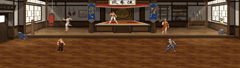 :具有中心区域的加速补给精灵的争夺、木质地板丈量纵向(Y轴)范围、木桶障碍、地板反光、墙壁(浮空反弹,例如落花掌控制)等大量值得研究和增加格斗趣味性与技巧性的可变因素。